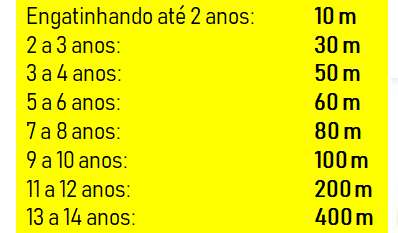 As categorias vão de corrida baby até 14 anos.