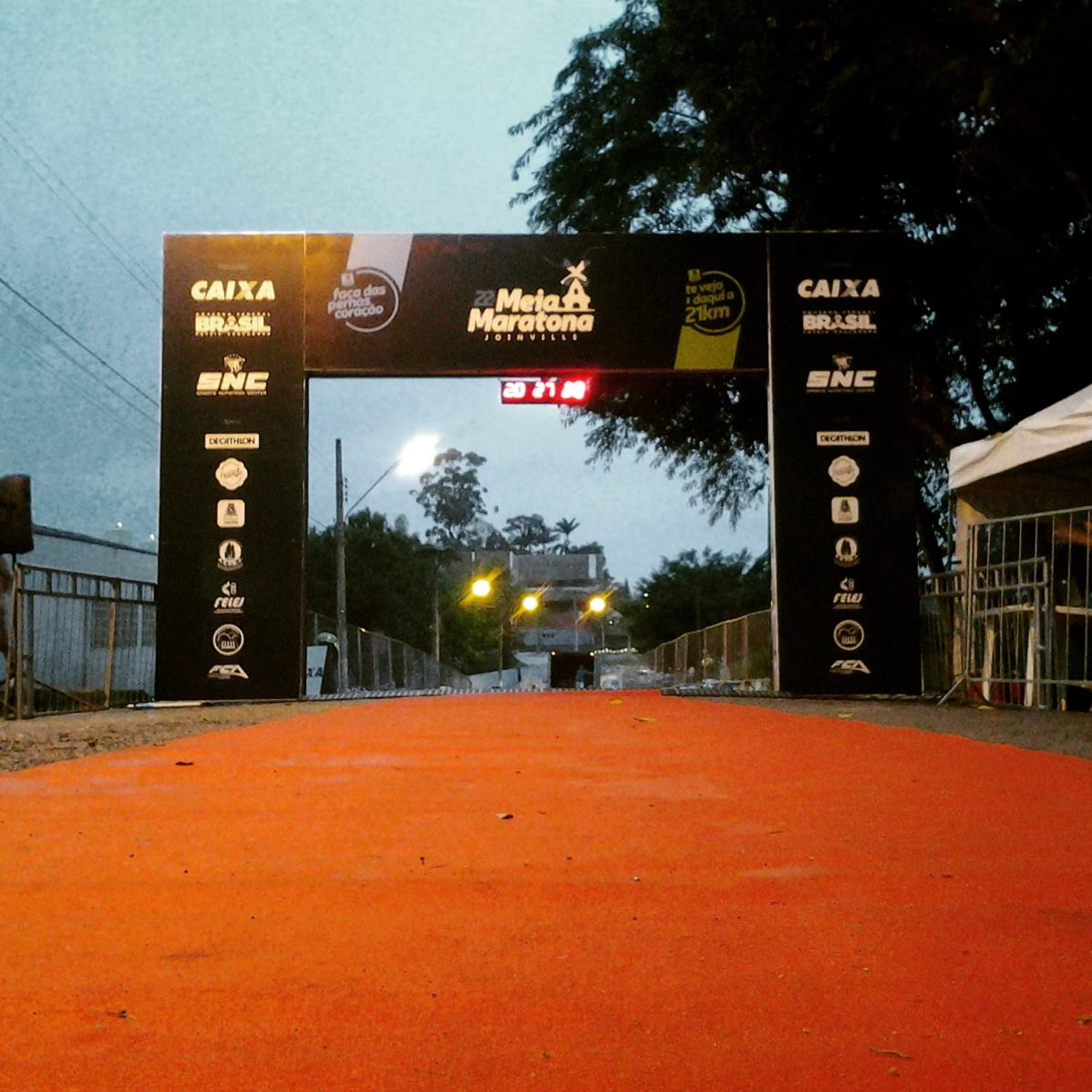Imagem do pórtico de chegada da edição 2015 da Maratona de Joinville