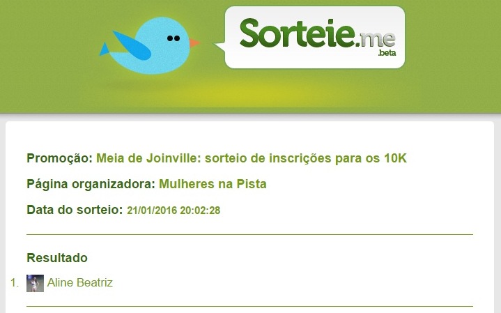 As Mulheres na Pista realizaram nesta tarde mais um sorteio para uma das inscrições para 10 km para a Meia Maratona de Joinville. Isso porque uma das vencedoras também ganhou uma inscrição para 5 km e preferiu ficar com a prova com menor quilometragem.