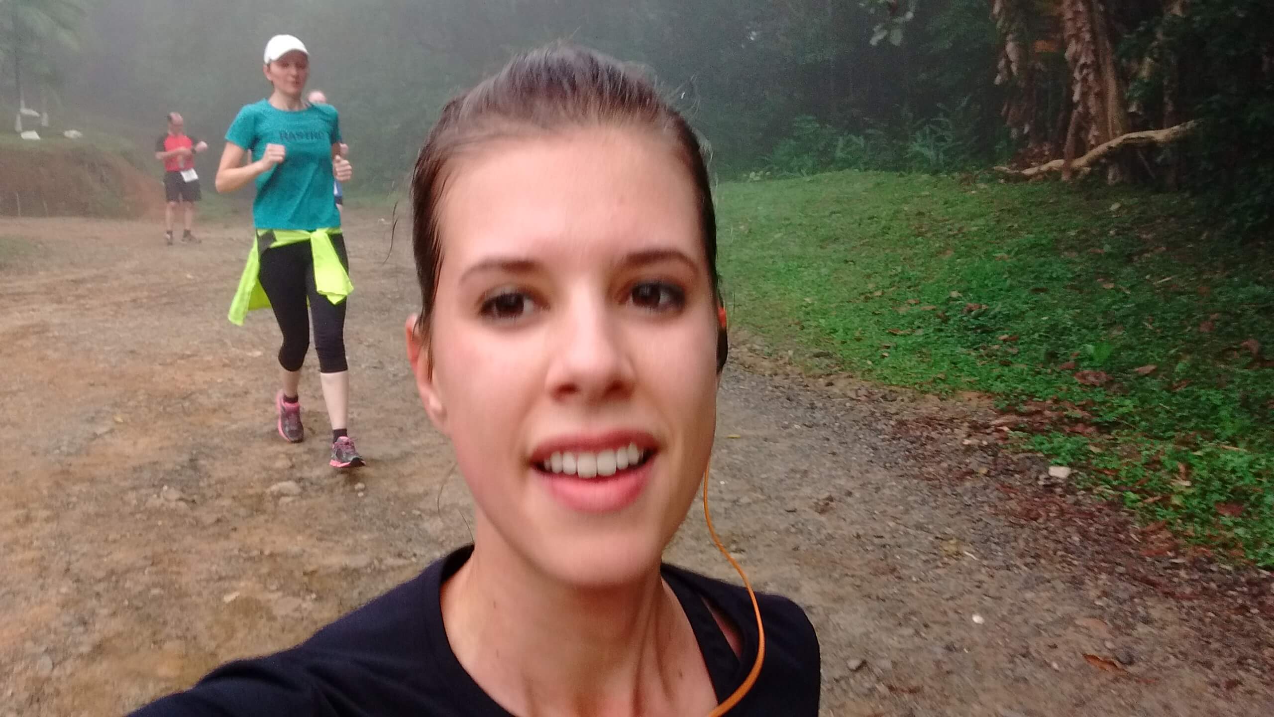 Depois de passarmos por uma trilha bem mais leve, finalmente chegamos à rua que leva ao Mirante de Joinville. Essa parte muito bem conhecida para mim e outros doidos que treinam ali semanalmente. Fui tranquila já que minha amiga Ivana estava com dores no nervo ciático. A Carol seguia com a Ana logo na nossa frente, intercalando caminhada e corrida.