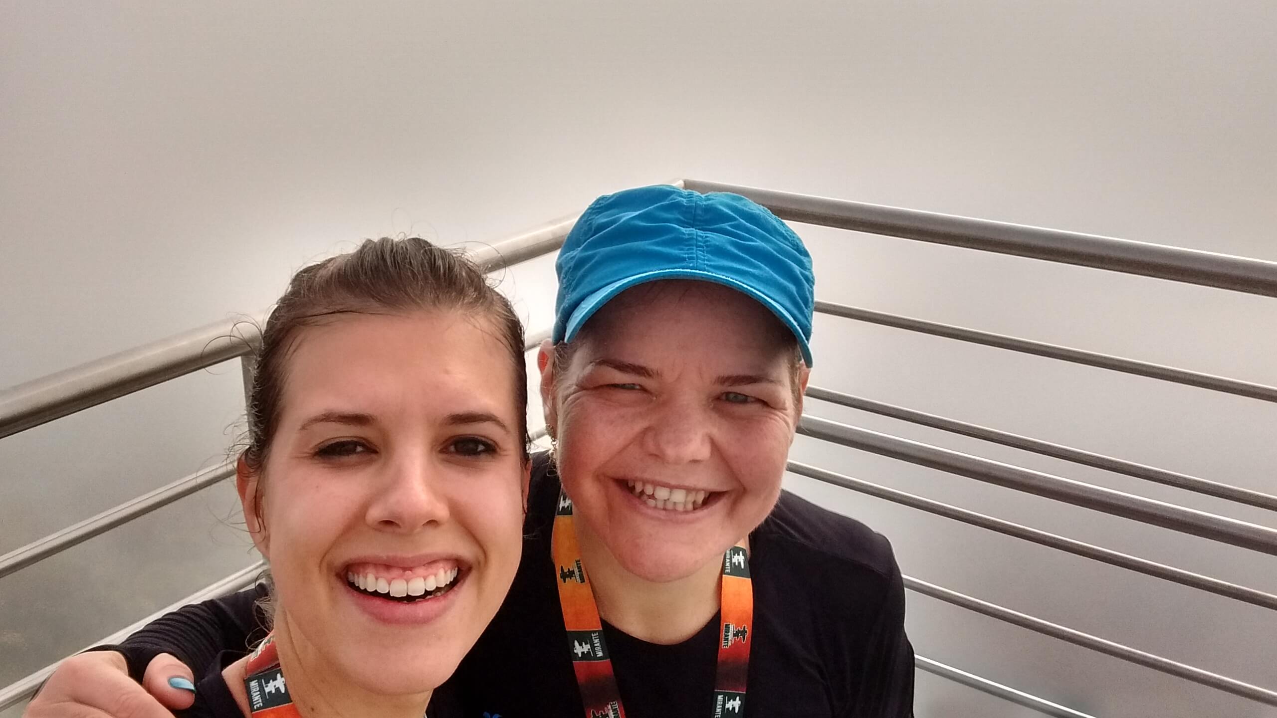 Eu havia combinado com a Ivana que, após a prova, subiríamos no Mirante para algumas fotos. Apesar de treinar lá sempre, eu ainda não havia subido nele após a sua inauguração. Mas minha ideia não deu muito certo já que a neblina era tanta, que parece que estamos no meio das nuvens!