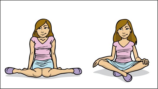 - Sentar com as pernas abertas e apenas com os pés cruzados