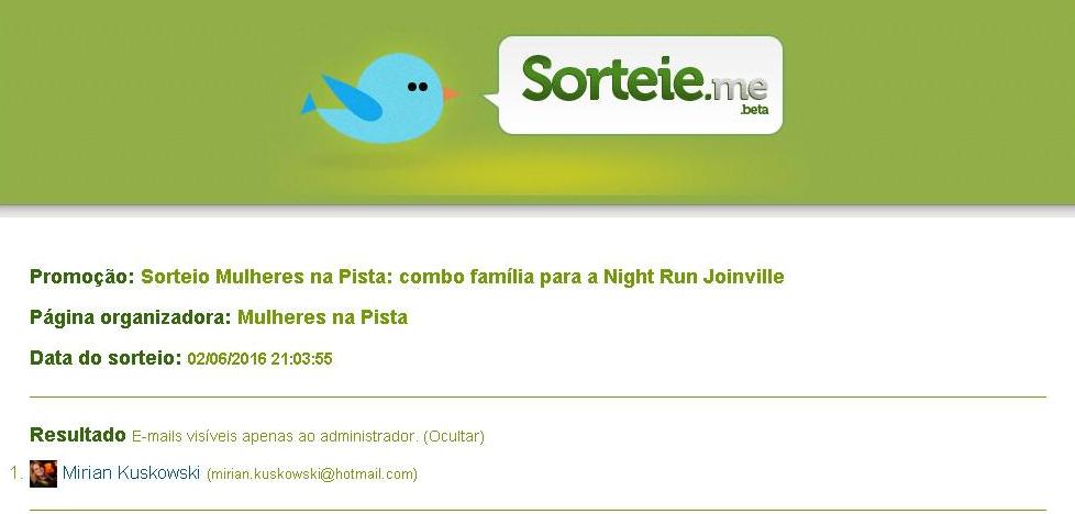 Parabéns, Mirian! Em breve vamos entrar em contato com você para fazer a inscrição da sua família! O resultado do sorteio pode ser conferido aqui também.