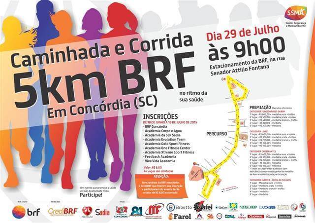 A cidade onde nasci, Concórdia, no oeste de Santa Catarina, comemora 81 anos de emancipação política e administrativa no próximo dia 29 de julho. Para comemorar a data, a BRF promove uma corrida e caminhada. Os organizadores esperam reunir cerca de mil pessoas – haverá 600 vagas para funcionários da empresa e mais 400 para moradores da cidade. A largada será às 9 horas, no estacionamento da empresa.