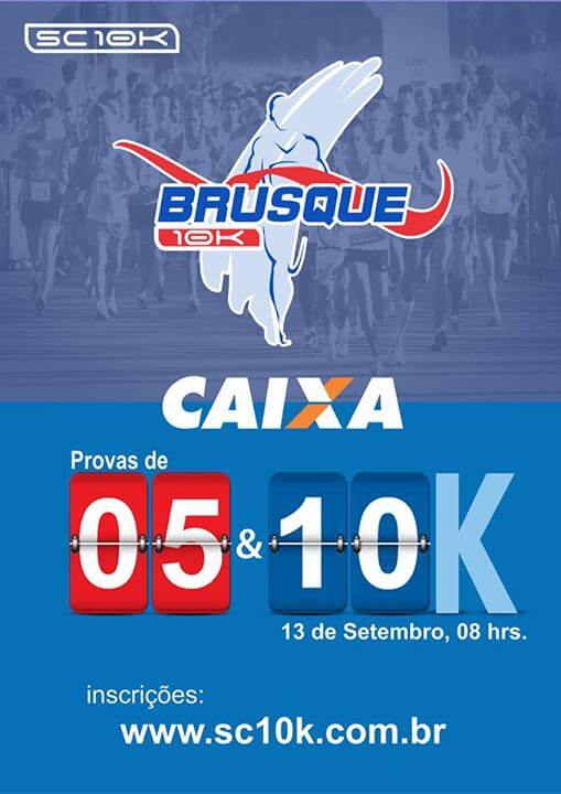 Lembrando que a Brusque10K Caixa será no próximo domingo, 13 de setembro, com largada às 8 horas, em frente à Arena Brusque. E aí, vamos?