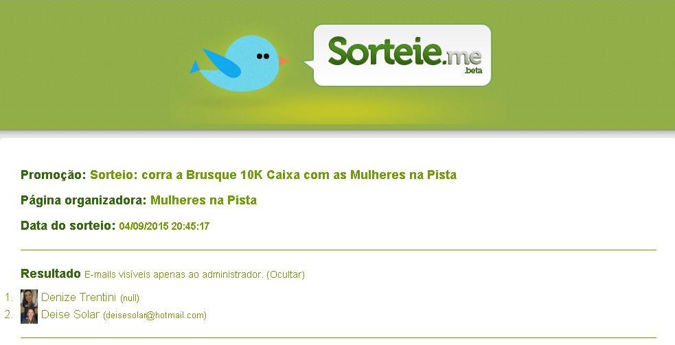 Então chegou o dia de saber quem são os dois sortudos que vão ganhar as duas inscrições para correr a Brusque10K com as Mulheres na Pista. Preparados? Então confira abaixo os nomes dos sorteados: