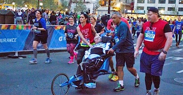 E por fim, os irmãos Kyle e Brent Pease. Brent levava Kyle na cadeira de rodas quando uma das rodas traseiras simplesmente se quebrou. Ainda faltavam 30 quilômetros para finalizar a prova e desistir nem passou pela cabeça dos dois. Brent tentou levar o irmão no colo, mas assim não conseguiria finalizar prova. Foi então que com a ajuda de pessoas que acompanhavam a prova, Brent amarrou a cadeira do irmão para que pudesse ficar no lugar da roda. E seguiu, com dificuldades. O que eles não esperavam é que, ali mesmo, lutando para vencer os próprios limites, uma corredora de Maryland e outro corredor de Nova Iorque fossem ajudar os irmão, e assim, os quatro, ultrapassaram a linha de chegada. Assim como vovó Sondra, os irmãos também arrecadaram dinheiro para sua instituição de caridade através da participação na prova.