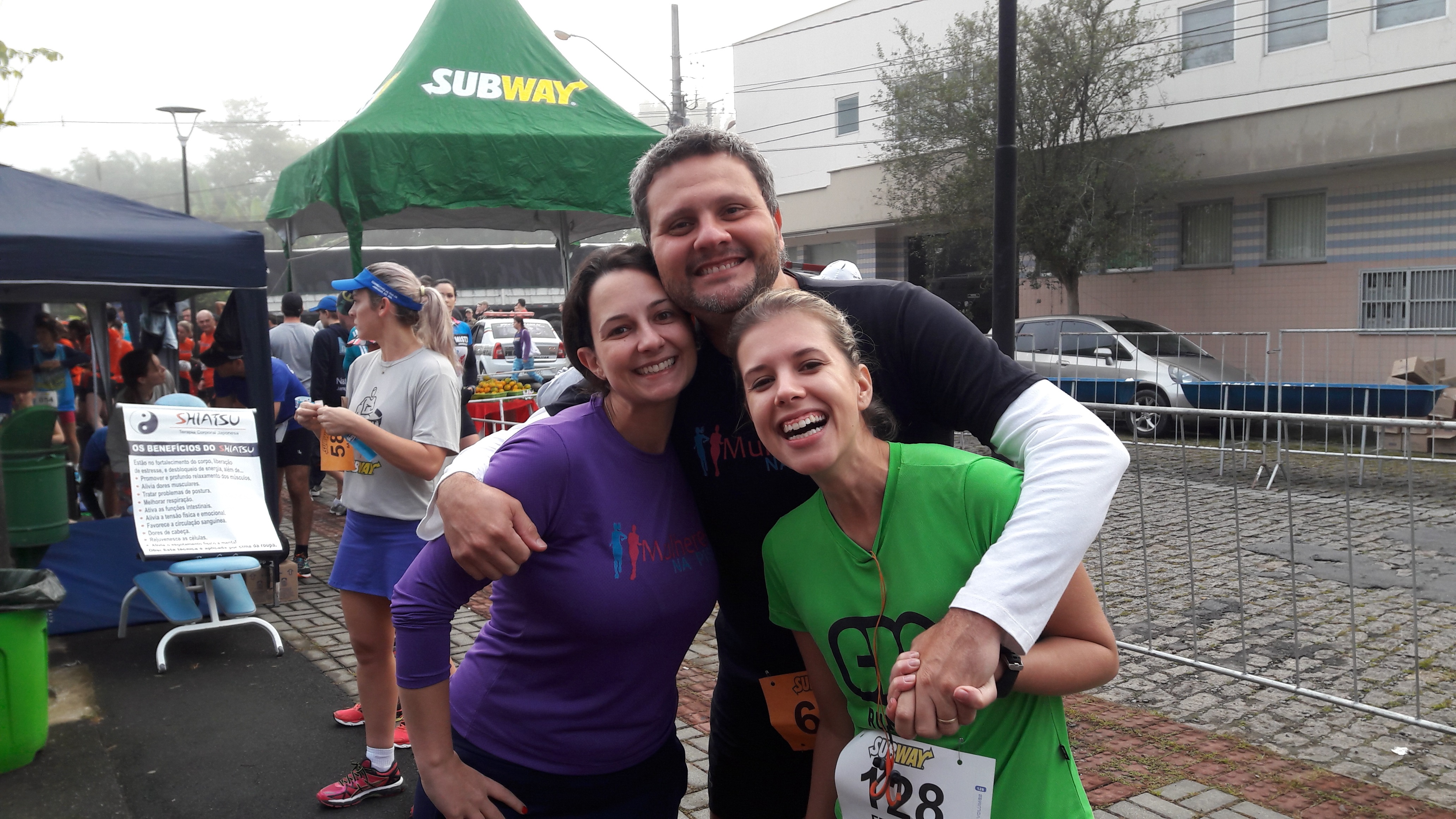 Mas o que eu quero falar sobre a corrida Jaraguá10K Subway é que ela foi o momento de celebrar a amizade. Para quem ainda não sabe, foi nesta prova que Fernanda e eu conhecemos o Márcio – cara superlegal, querido e dedicado e que há um ano começou a trazer pessoas e mais pessoas queridas para junto do nosso grupo. Ele é superespecial e também estava nesta corrida. Fez questão de ir. Fer e eu fizemos questão de registrar nosso encontro.