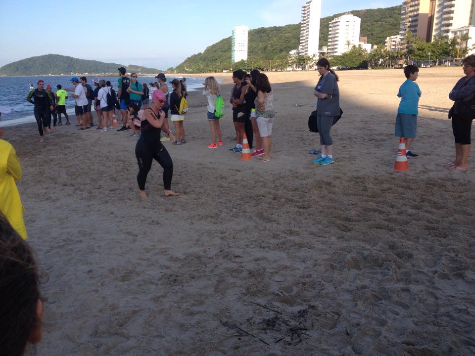 No domingo, dia da prova, acordei, tomei um bom café e fui. Aqueci um pouco antes da largada, dei umas braçadas para ver como me sentia e quando vi estava superbem. Fui me despedir do meu marido e ali o nervosismo bateu. Comecei a chorar e ele me deu força para entrar nesta prova.
