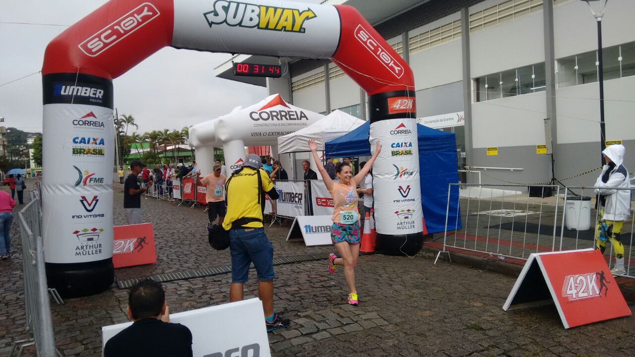 Fechei a prova com tempo de 31 minutos e 14 segundos. Oitavo lugar na minha categoria. Cheguei entre o primeiro e o segundos colocados na 10k masculina. Cansada, mas infinitamente feliz e orgulhosa, fui curtir a premiação.