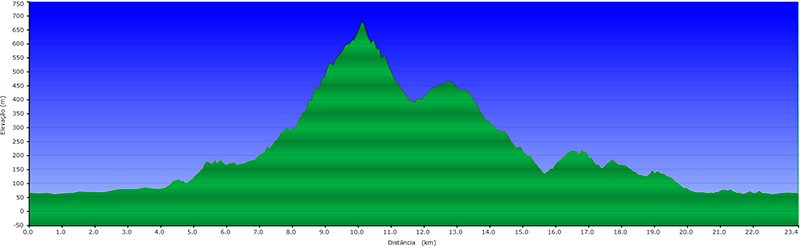 Descrição: Percurso de nível de dificuldade médio recomendado para atletas que já possuam experiência em corridas de montanha ou meia-maratona de rua.