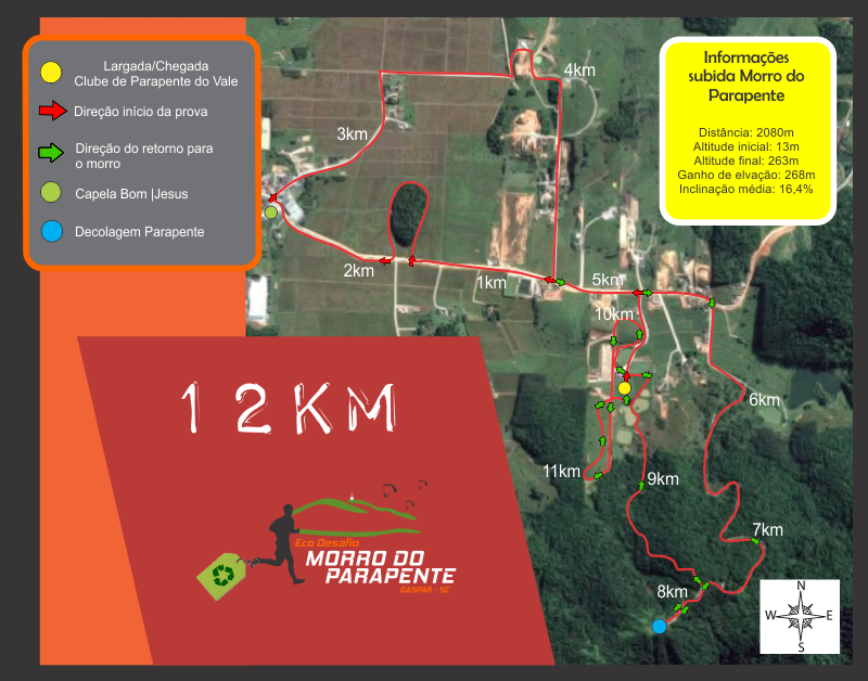 A retirada do kit da prova será no sábado antes da largada, das 10h às 15 horas. Isso no mesmo local da largada e chegada, o Clube de Parapente do Vale, que fica na Rua Artur Poffo – 1920 – Santa Terezinha, em Gaspar.