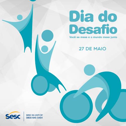 Ah, mas você não sabe onde e como participar do Dia do Desafio? Então clique aqui e confira a programação diversificada e gratuita que o Sesc vai disponibilizar nas cidades participantes. Escolha o que você mais gosta de fazer e mexa-se!