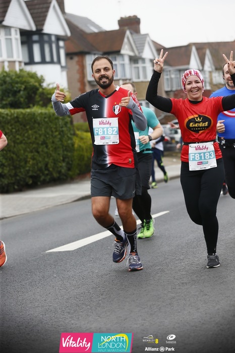 Foi dia 12 de março, já estávamos com a nossa viagem planejada pra Europa, e saímos em busca de uma prova que estivesse dentro do nosso calendário de férias. Encontramos a Vitality North London Half Marathon, uma meia maratona que percorreria o Norte de Londres, com chegada no estádio de Wembley. Perfeito!