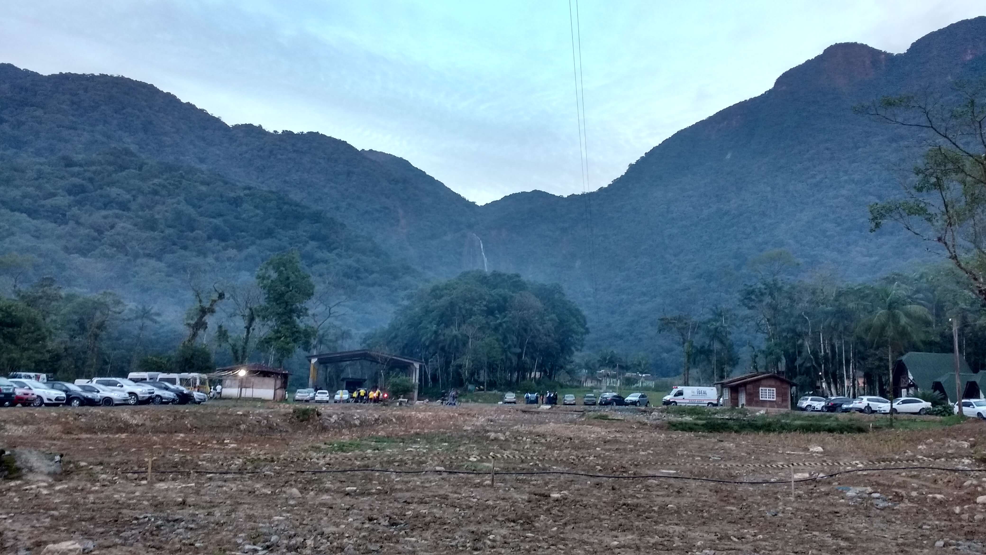 Vimos o amanhecer do dia no caminho, o dia foi clareando em tons de rosa e salmão. O sol dava as caras para aquecer um pouco aquele dia frio. Chegamos, estacionamos e logo encontramos o professor Cristiano Berezoski que já havia armado a tenda da CBS no local.