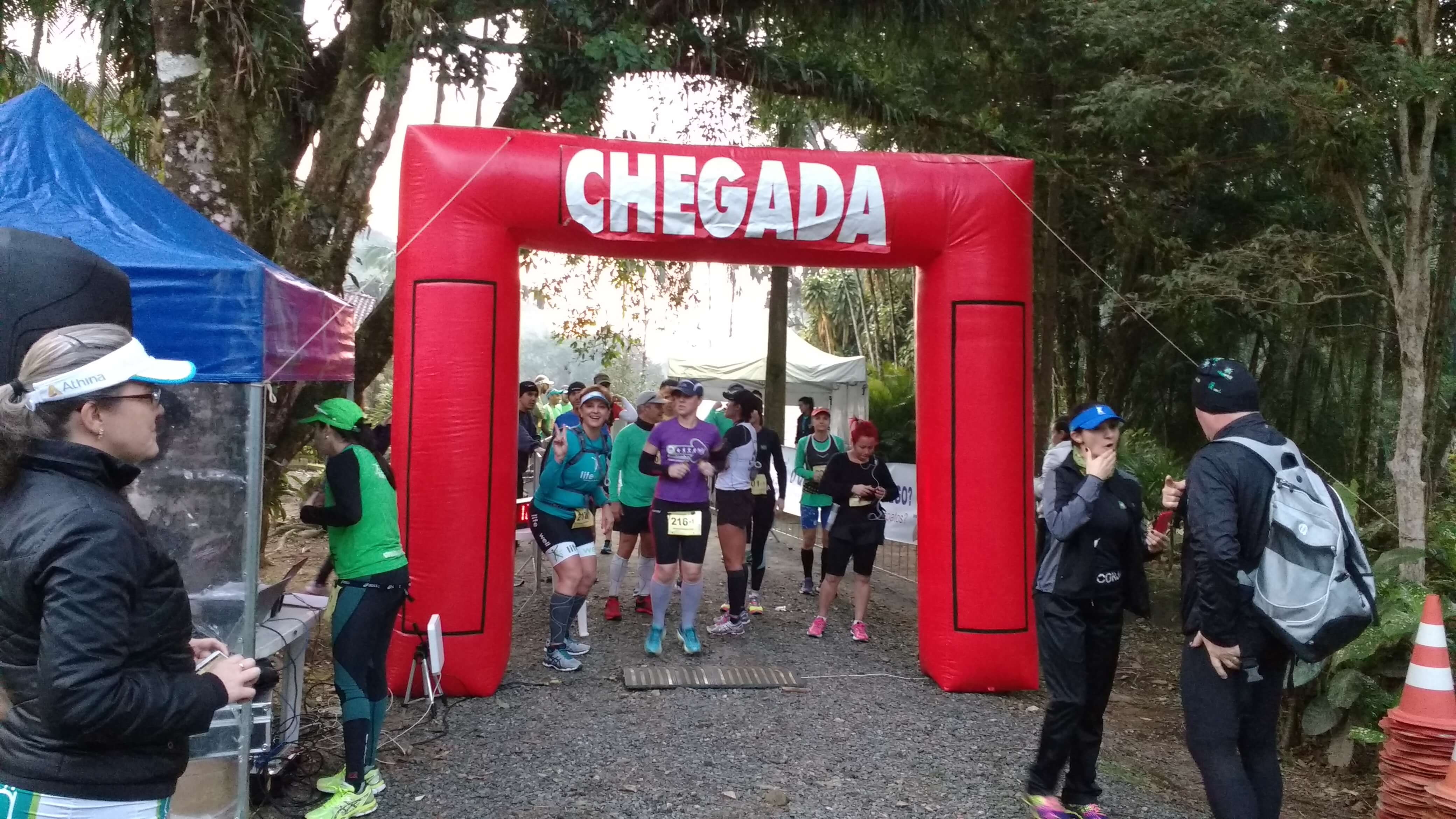 Sinal dado, lá fomos nós! Eu, que queria ir de leve acabei largando muito mais forte do que estou acostumada. E, aliado ao cansaço – não havia dormido direito desde o inicio daquela semana – acabei quebrando. Com muita dor no músculo do diafragma, fui obrigada a caminhar. Mas para a minha sorte a amiga da CBS Gabriela Gastal me alcançou e foi me puxando o resto da prova. Percebi o quanto é importante esse apoio quando não passamos bem numa prova. O apoio dela foi essencial!!