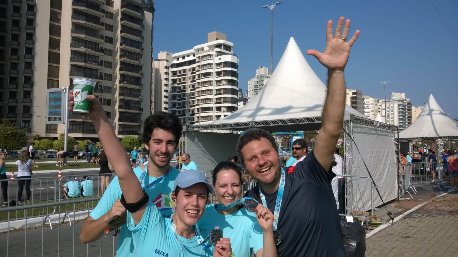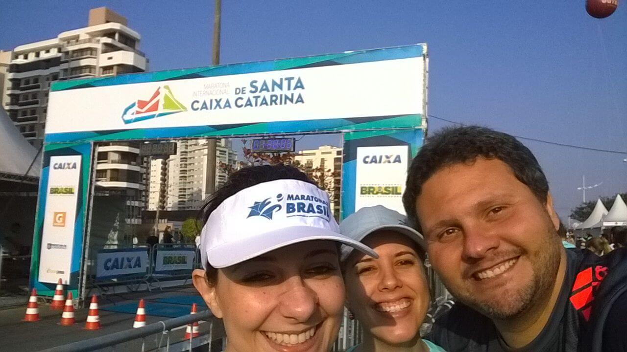 A largada dos 42k ocorreu às 7h. Como a prova dos 5k e dos 10k estava marcada para um pouco mais tarde, cheguei às 7h15 no local da corrida com os kits da Fernanda e do Márcio. Pegamos o chip e colocamos a conversa em dia – os dois e o Antônio, marido da Fer, saíram de Joinville às 4h para correr aqui em Floripa. Fiquei feliz por, mais uma vez, ter a companhia dos amigos em uma corrida de rua – e poder presenciar mais um momento de superação na vida da Fer, que reduziu o tempo em seis minutos, e do Márcio, que estava com muita dor nas costas, e correu mesmo assim.