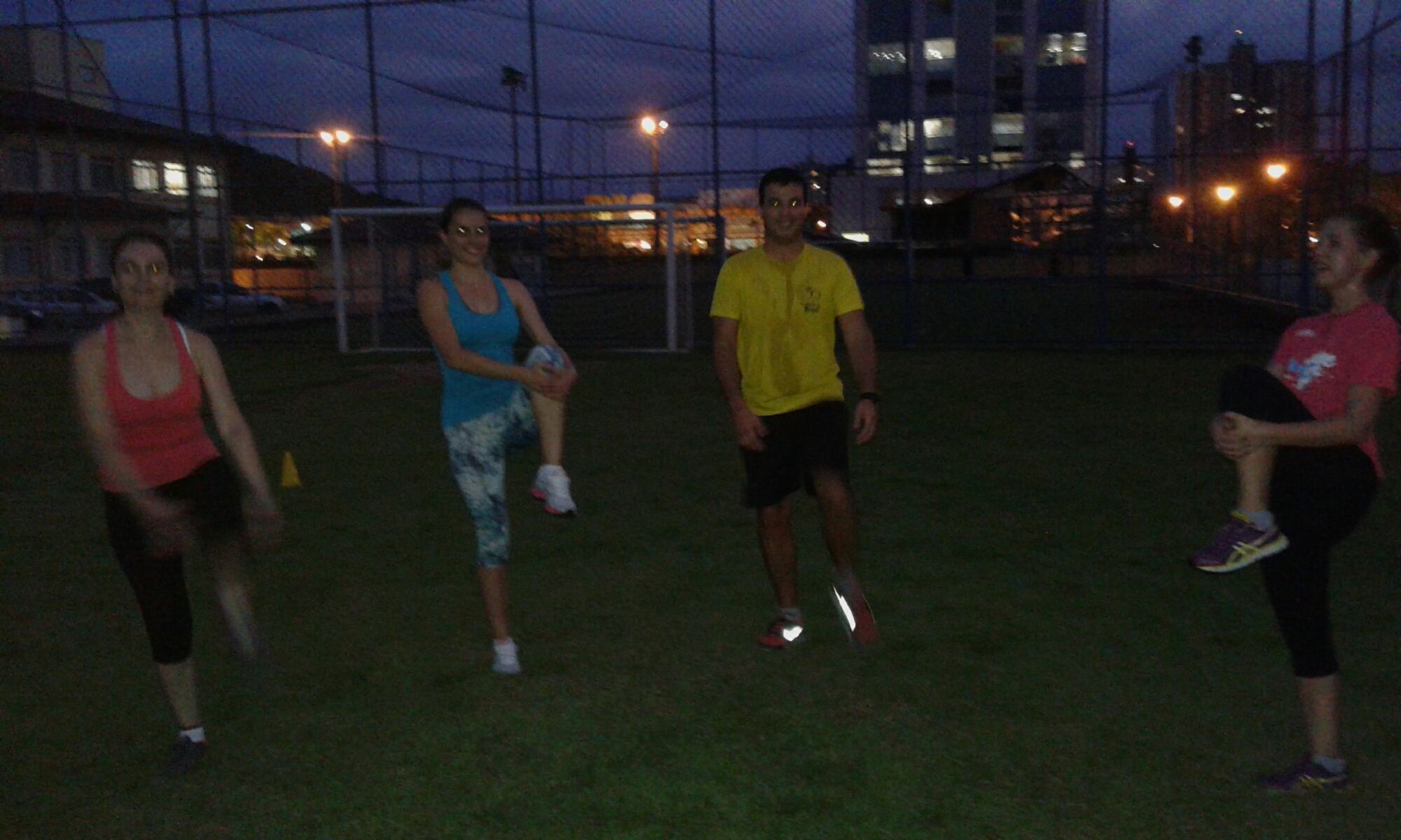 Ontem foi mais um dia de treino com o Grupo de Corrida do Sesc, com a professora Katia. Fizemos uma corrida de aquecimento, depois exercícios de coordenação e equilíbrio e por fim vários tiros. Nessa parte só o casal Luan e Cátia e eu fizemos e a Andreia, aluna nova, voltou aos exercícios do início.