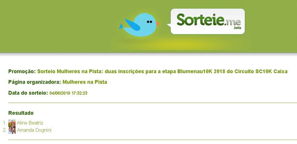 Parabéns, meninas! você também pode conferir o resultado do sorteio neste link. Vocês poderão escolher entre percorrer 5k e 10k.