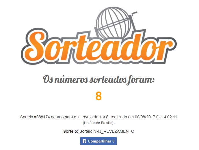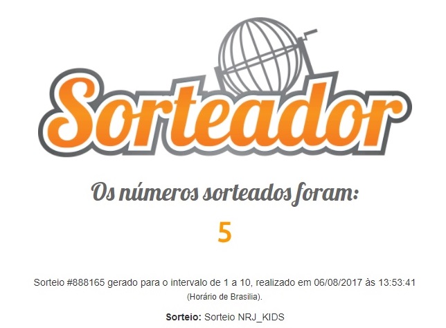 Tínhamos 10 participantes e o sorteador sorteou o número 5. Confira quem ganhou. O link do sorteio está aqui.