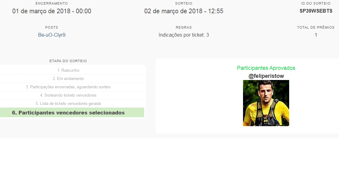 O segundo sorteado foi: Felipe Ristow, no sorteio do Instagram!