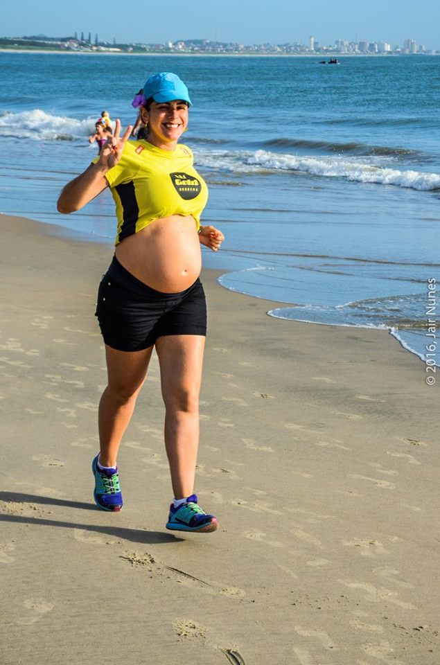 Eu corri gravida até os 5 meses, depois tive que parar por uma complicação na gestação. Mas gravidez não é empecilho pra correr, se o seu médico liberar, continue correndo, você vai se sentir super bem, pode ter certeza! Na foto a minha amiga corredora, mãe do Benjamin e do Artur, que correu até quando o Ben deixou. Tive o prazer de fazer a meia maratona W21K, e ela já estava com o Bem na barriga… Corremos a prova monitorando os batimentos e foi uma experiência incrível! Encontramos outras mamães corredoras com suas barrigas lindas desfilando na prova.