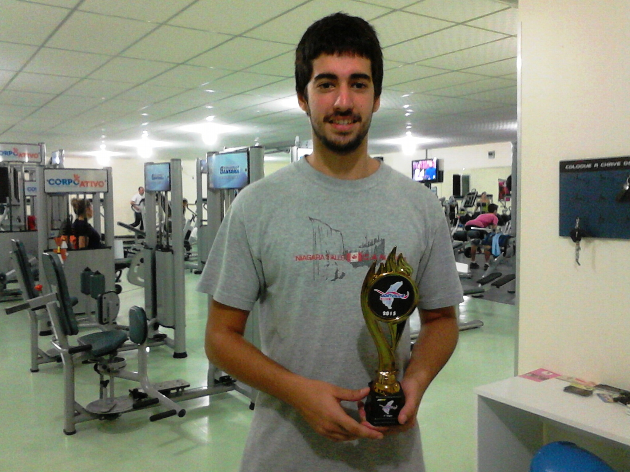 Ah! Ontem foi dia também de entregar o troféu para o meu colega de corrida e de academia Gustavo Kindermann. Vocês lembram que ele foi o vencedor do sorteio dos ingressos para a prova? E ainda chegou em Joinville arrasando. Correu os 10k na Joinville 10K Subway, a primeira prova da vida dele, e ainda conquistou o troféu de terceiro lugar na categoria 18-24 anos. Ele é uma promessa!