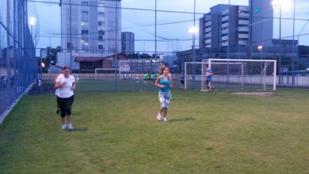 A professora Katia fez as fotos do pessoal fazendo aquela corrida de aquecimento.